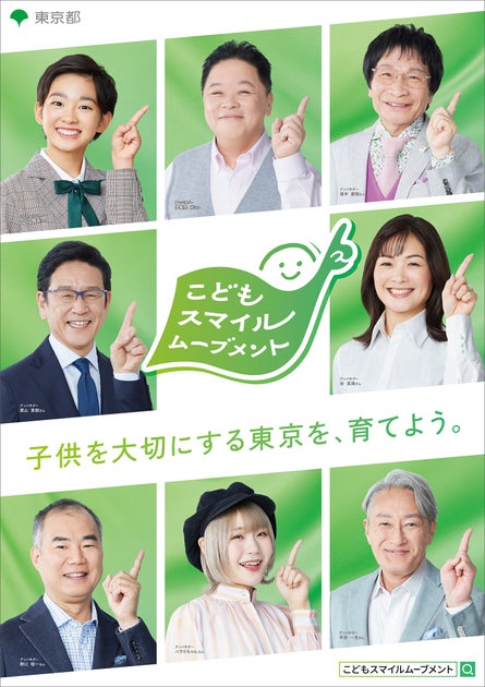 こどもスマイルムーブメントのPRポスターは、子供たちが選んだロゴマークを持つアンバサダー8名が、「子供を大切にする東京を育てよう」というメッセージを発信します。