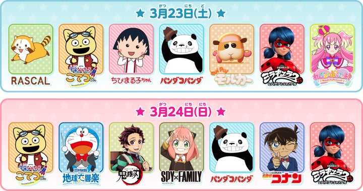 参加作品には「鬼滅の刃」や「名探偵コナン」など全14作品が登場します。