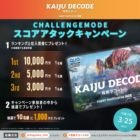さらに、KAIJU DECODEのゲームリリースを記念してQUOカードが当たるキャンペーンも開催されています。