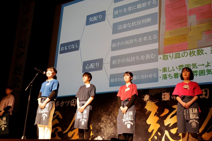 SEASON1の総合優勝は神田店で、プレゼンテーションではおもてなしや笑顔の重要性が強調されました。