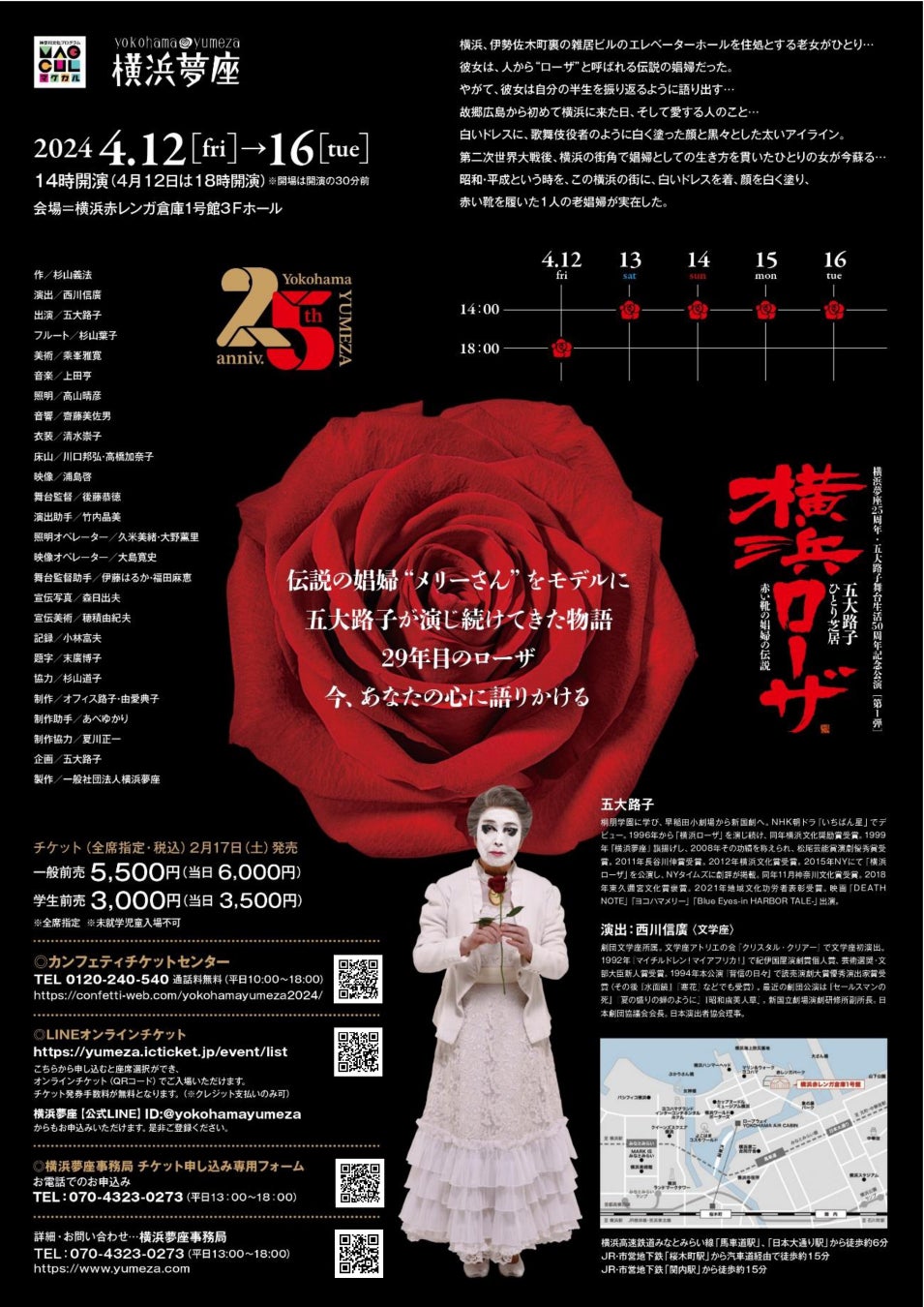 今年は横浜夢座の25周年と五大路子の舞台生活50周年を祝い、ゲストを招いたトークショーも開催されます。
