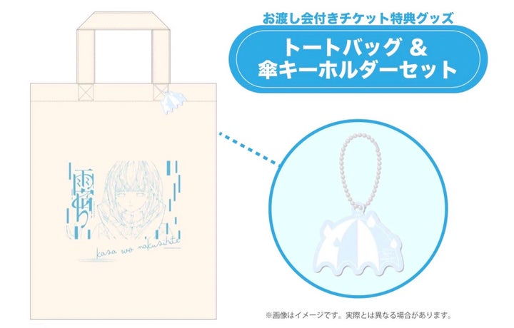 15歳以下向け割引チケットや特典お渡し会付きチケットも用意されており、傘形アクリルキーホルダーやコットントートバッグのセットなどの特典グッズも販売されます。