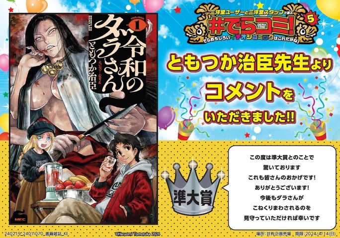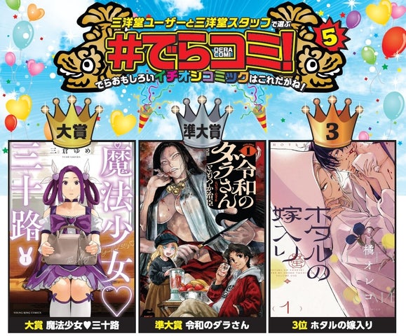 コミックアワード「#でらコミ!」第5回では、『魔法少女♡三十路』が大賞、準大賞は「令和のダラさん」が選ばれました。
