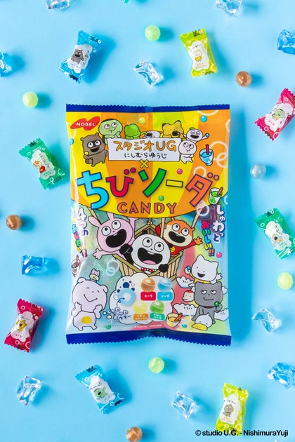 2024年3月18日に全国発売される「スタジオUGちびソーダ」は、スタジオUGの人気キャラクターがパッケージに登場し、個包装にはキャラクターごとのメッセージが入っています。