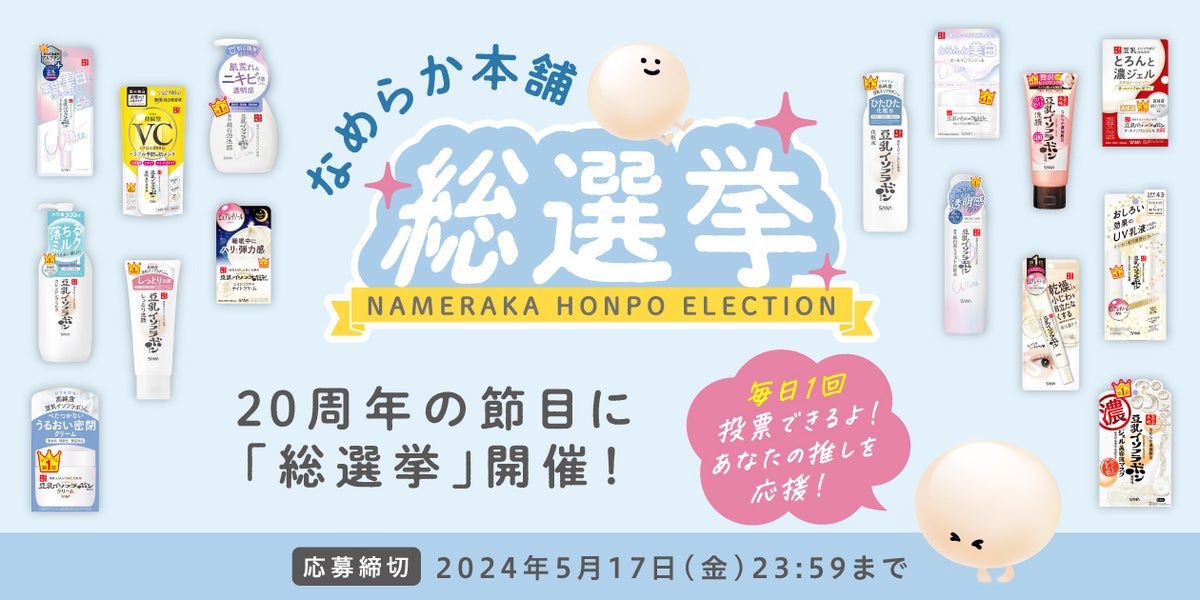- 常盤薬品工業が展開する『なめらか本舗』が20周年記念総選挙キャンペーン開始