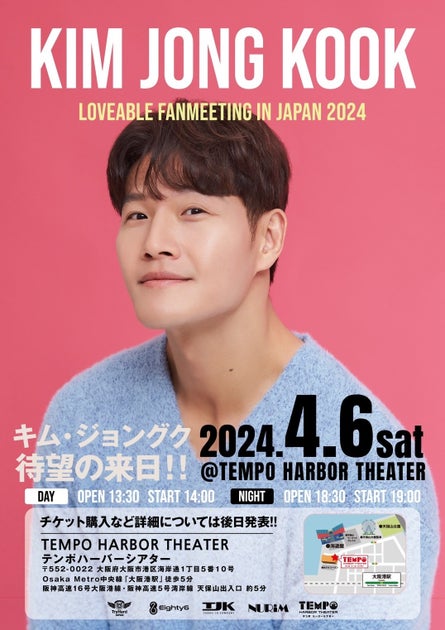 2024年4月6日にTEMPO HARBOR THEATERで開催される「KIM JONG KOOK’S LOVE ABLE FANMEETING in JAPAN 2024」が発表されました。