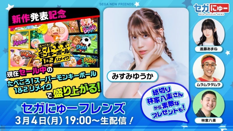 - みすみゆうかさんや林家八楽さんをゲストに迎えて『たべごろ!スーパーモンキーボール 1&2リメイク』をプレイ