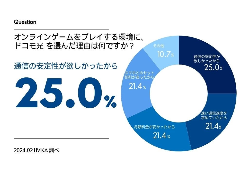 ゲーマーがドコモ光を選ぶ理由は通信の安定性が主であり、満足度も高いようです。