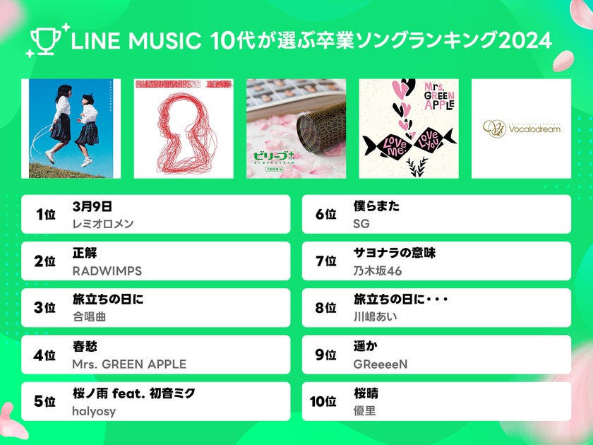 10代が選ぶ「卒業ソング ランキング2024」で1位に輝いたのはレミオロメンの「3月9日」。