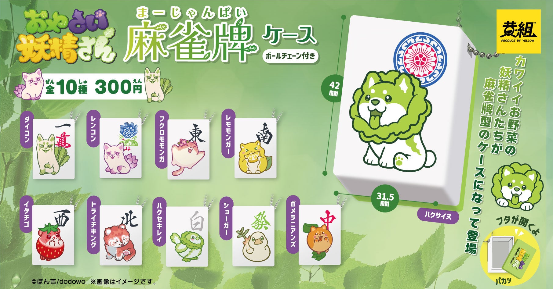 価格は300円で全10種類展開され、可愛らしいキャラクター「おやさい妖精さん」が麻雀牌になり、小物も収納可能です。