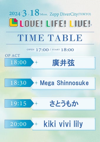 - 2024年3月18日にZepp DiverCity(TOKYO)で「LOVE!LIFE!LIVE!」開催