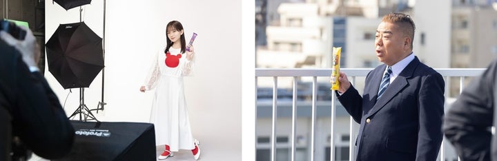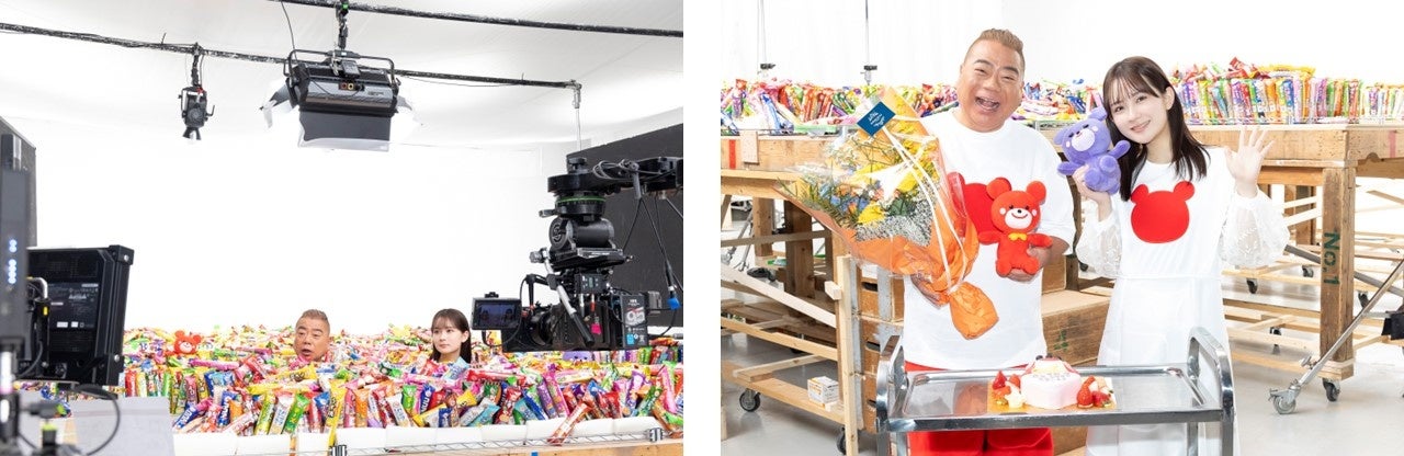 - 出川さんと畑さんが特徴的なセットでプチに囲まれる新CMやショートドラマ