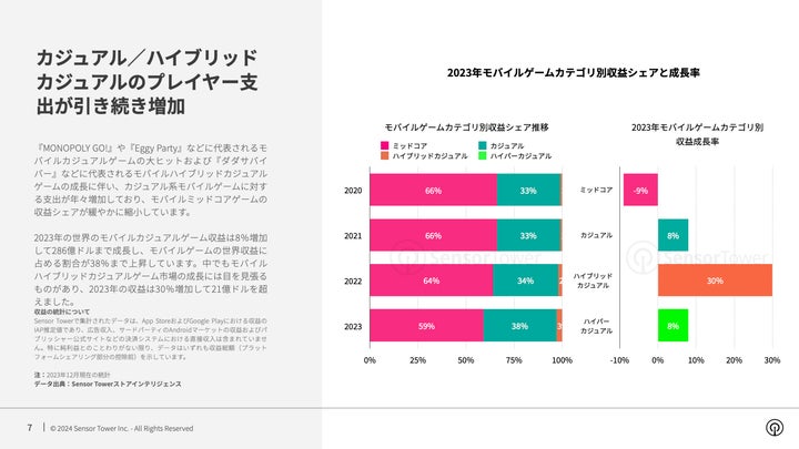 モバイルカジュアルゲームは増加傾向にあり、ミッドコアゲームは9%減少しています。