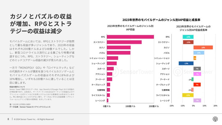 パズルゲームとカジノゲームはそれぞれ18%、10%増加しています。