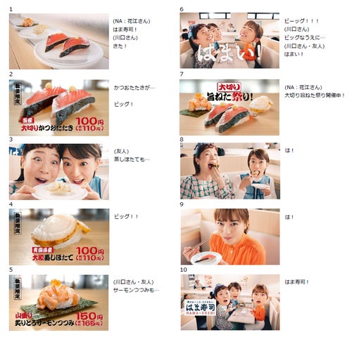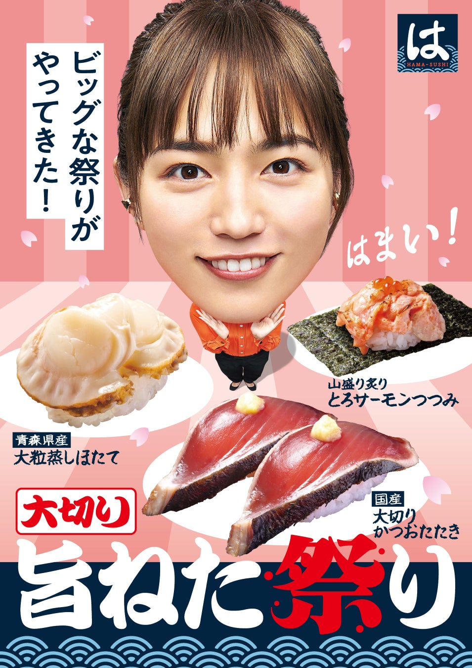 はま寿司の新TVCMでは、大切り旨ねた祭りの一部商品を紹介し、川口さんと友人が楽しそうに大きな商品を食べるシーンが特徴となっています。