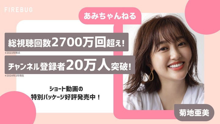 FIREBUGはこの拡大を記念し、「あみちゃんねる」のショート動画特別パッケージを販売開始しました。
