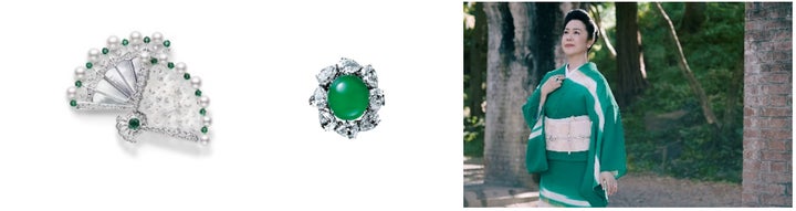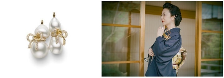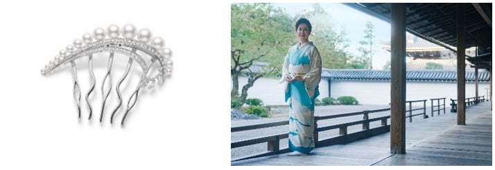 ミキモトは真珠を使用した和装ジュエリーを手がけており、名取さんがハイジュエリーを身に着けて京都を訪れる様子が描かれています。