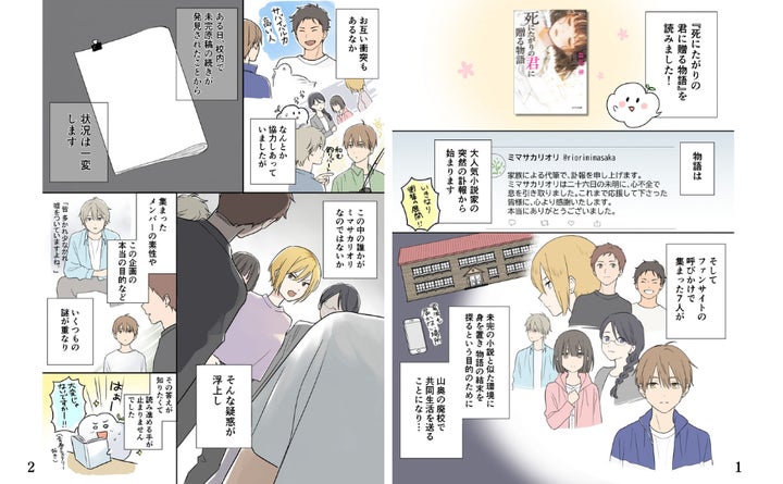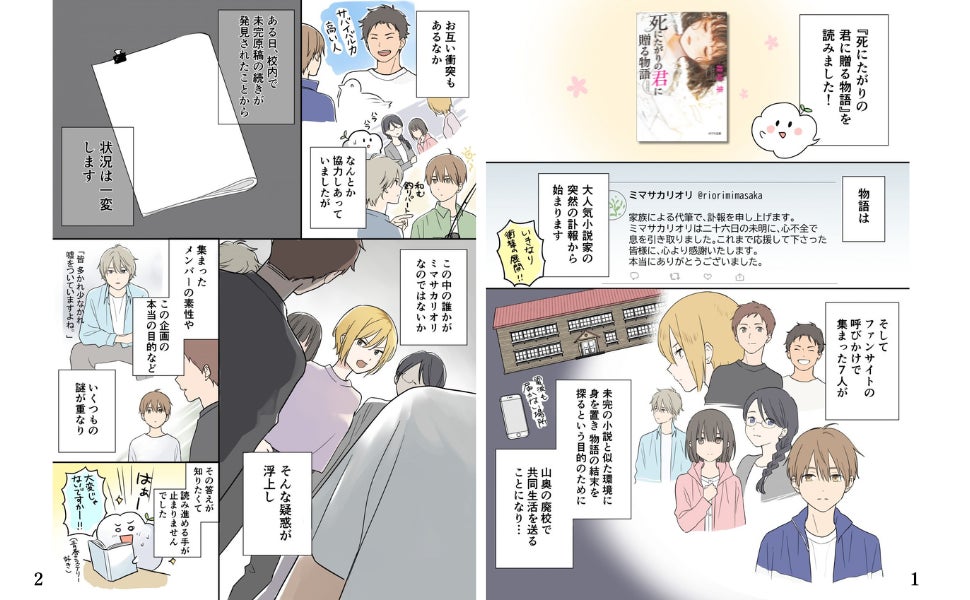 人気小説家の訃報とファンの未遂自殺から始まる物語「死にたがりの君に贈る物語」。