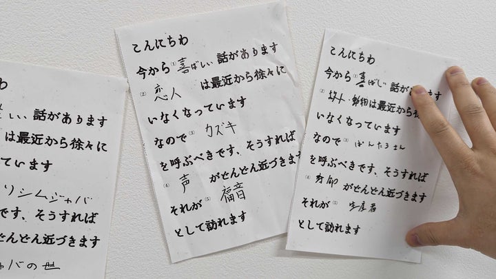 会場には100枚以上の怪文書が展示され、来場者はそれぞれの物語を楽しんでいます。
