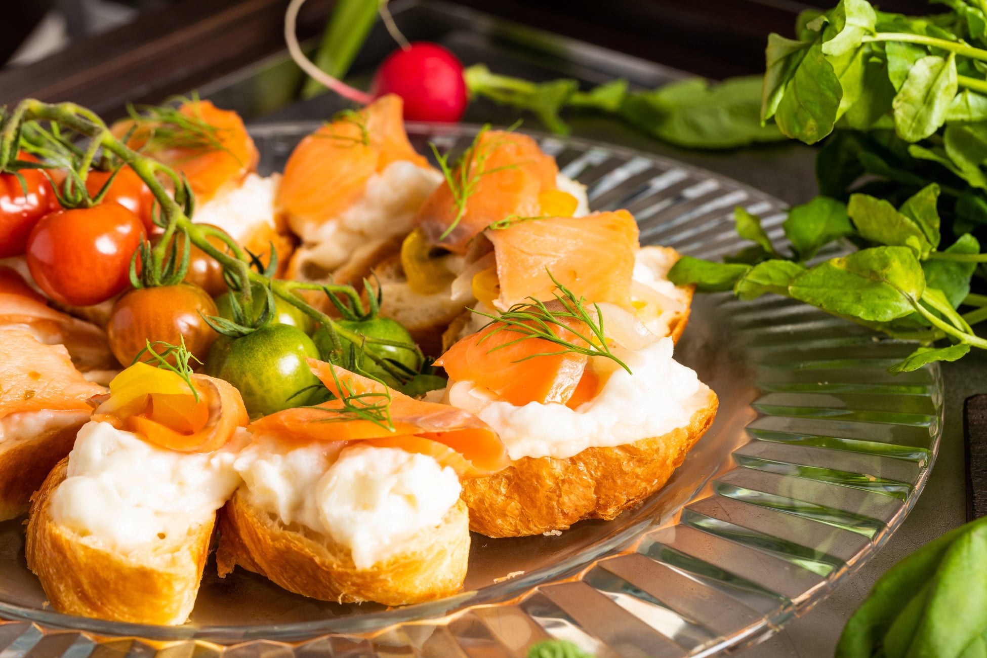 サーモンのオープンサンドやいちごデザートが楽しめます。