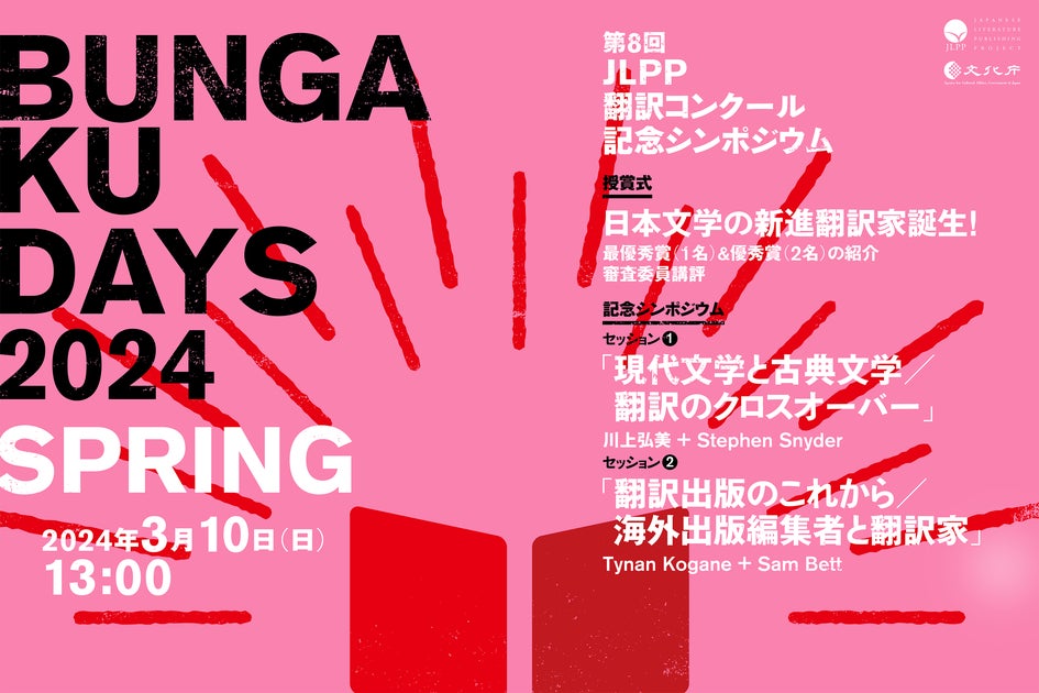 文化庁は第8回JLPP翻訳コンクールの授賞式と記念シンポジウム「BUNGAKU DAYS 2024 SPRING」を開催します。
