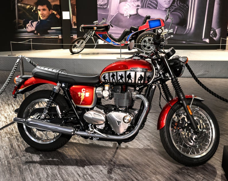 トライアンフが最新のモーターサイクル、Bonneville T120をカスタマイズし、アーティストのJ Daarによるエルヴィス・プレスリーの影響を受けたデザインを発表しました。