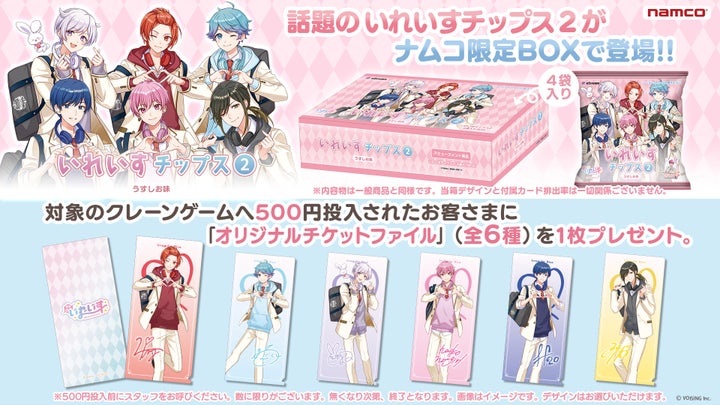 500円を投入すると、「ナムコオンラインクレーン」でオリジナルチケットファイルをプレゼントするキャンペーンも実施されます。