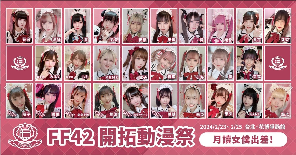 2024年2月、台湾のFF42「Fancy Frontier 開拓動漫祭」には、ツクヨミメイドカフェから28名のメイドが参加した。