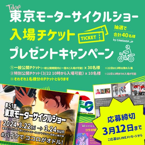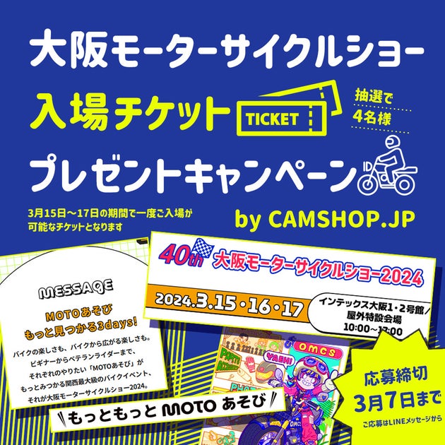 - CAMSHOP.JPがモーターサイクルショーのチケットプレゼントキャンペーンを実施中