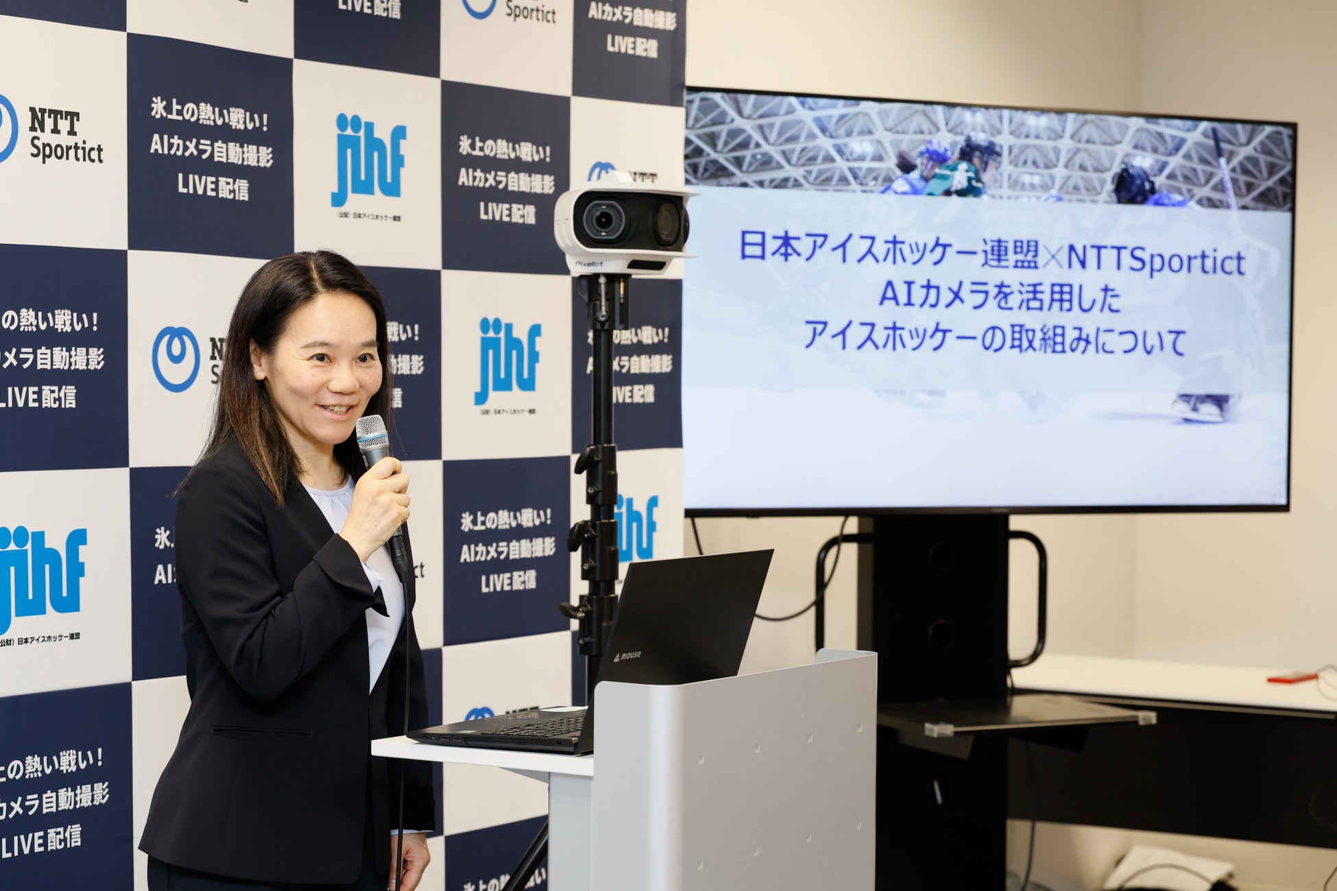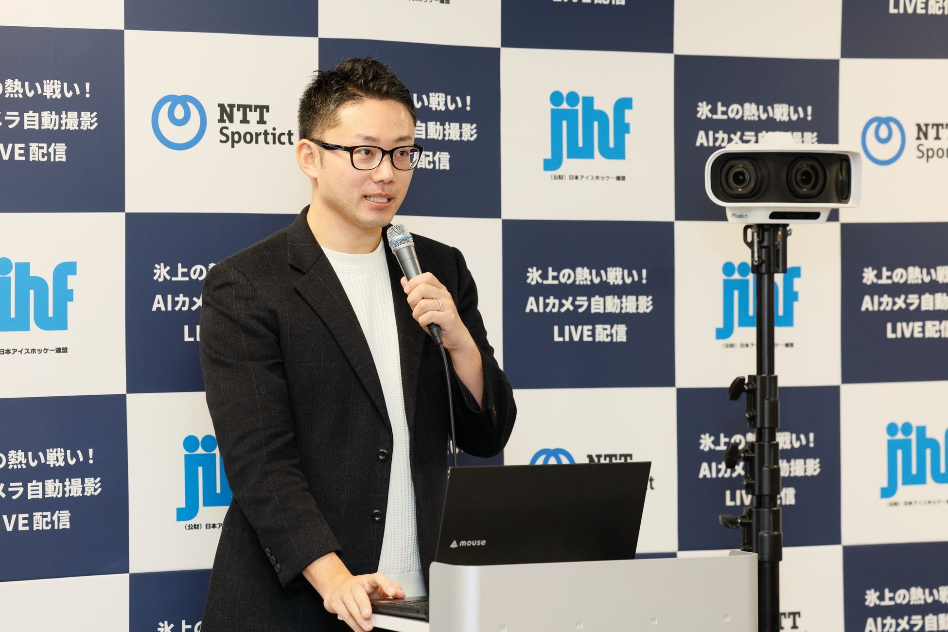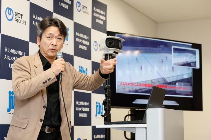 NTTSportict社は、AI技術を活用したアイスホッケーの試合配信に取り組んでいます。