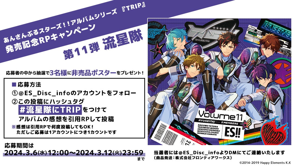 本日、『あんさんぶるスターズ!!』のアルバムシリーズ『TRIP』から流星隊のアルバムが発売されました。