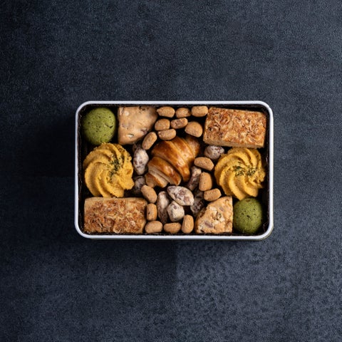 - 和楽紅屋のクッキー缶には、干しえびや柚子胡椒、醤油などを使用した7種類のクッキー