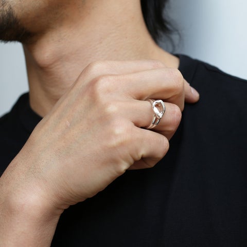 喜平のデザインを取り入れたシンプルで力強いリング、ネックレス、ピアスがラインナップされています。