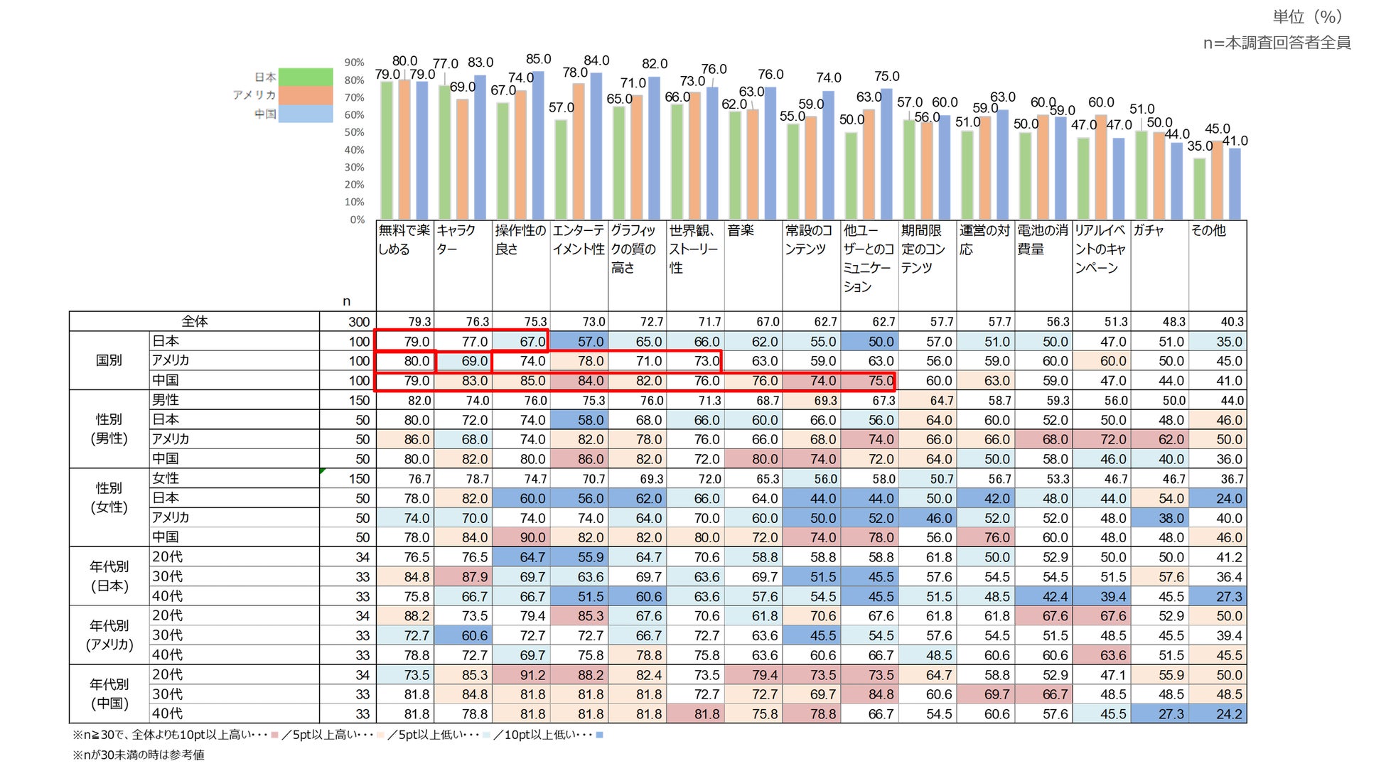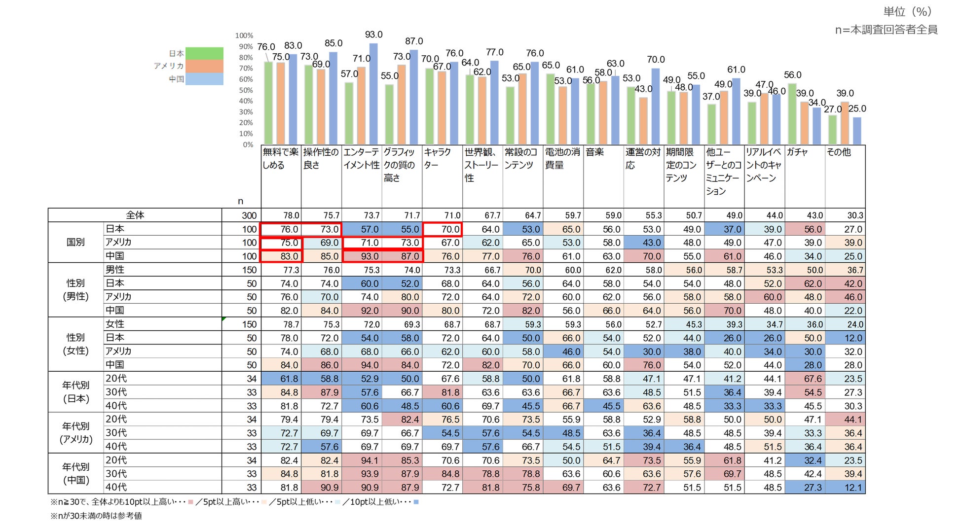 - 各国の20~40代プレイヤーを対象に、ゲームの違いを比較