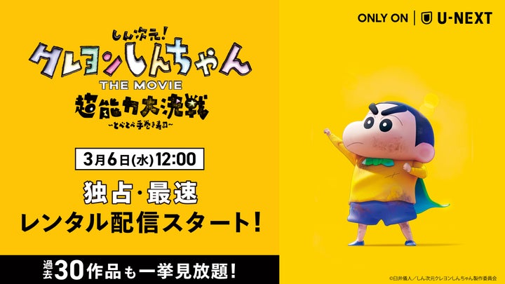 - UNEXTが2024年3月6日より『しん次元!クレヨンしんちゃん THE MOVIE 超能力大決戦 ~とべとべ手巻き寿司~』を独占最速レンタル配信