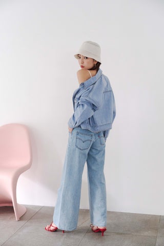 - FEATHER WEIGHT TRUCKERジャケット、ストレッチデニムパンツ、小花柄デニムパンツ、ラインストーンが華やかなデニムパンツ