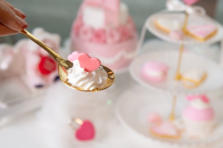 春の限定フォトスポットやスイーツブッフェ風のフォトスポットが登場し、推し色のマカロンやカップケーキが並びます。