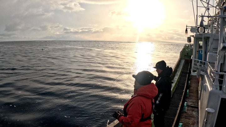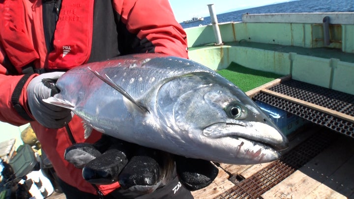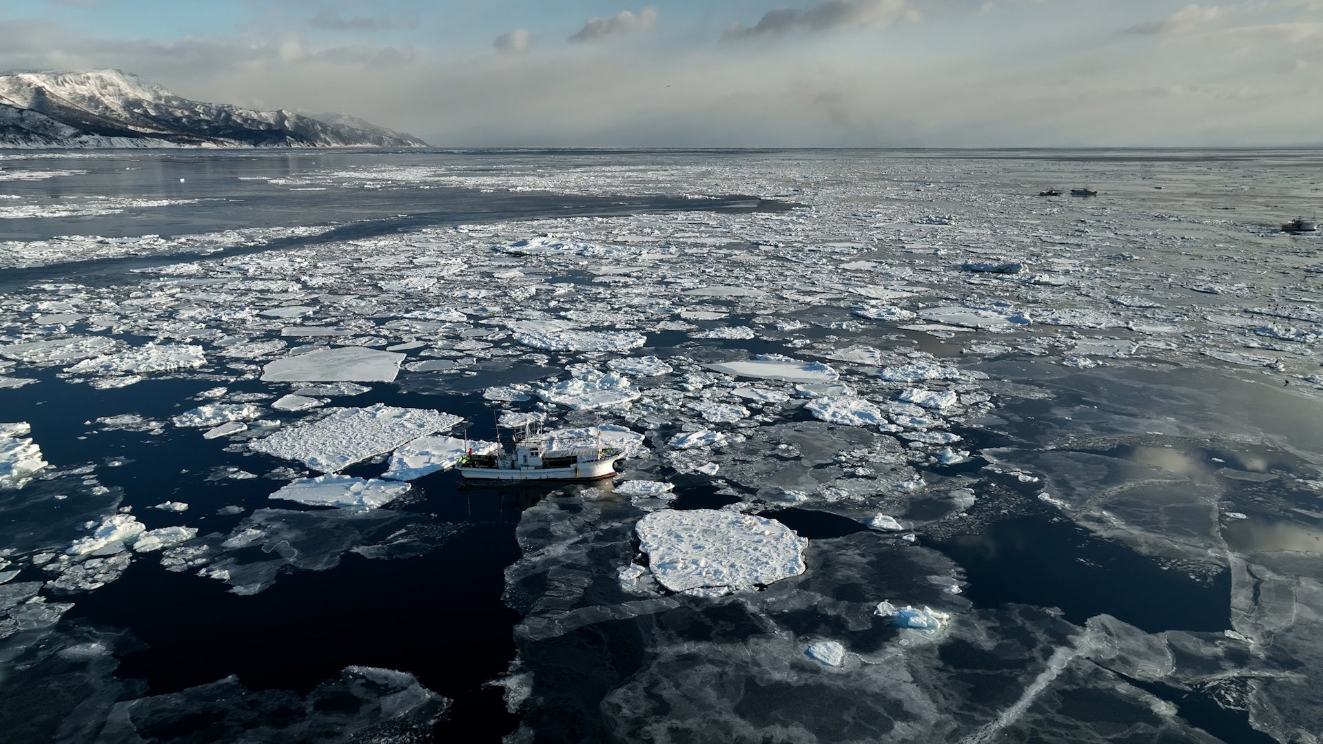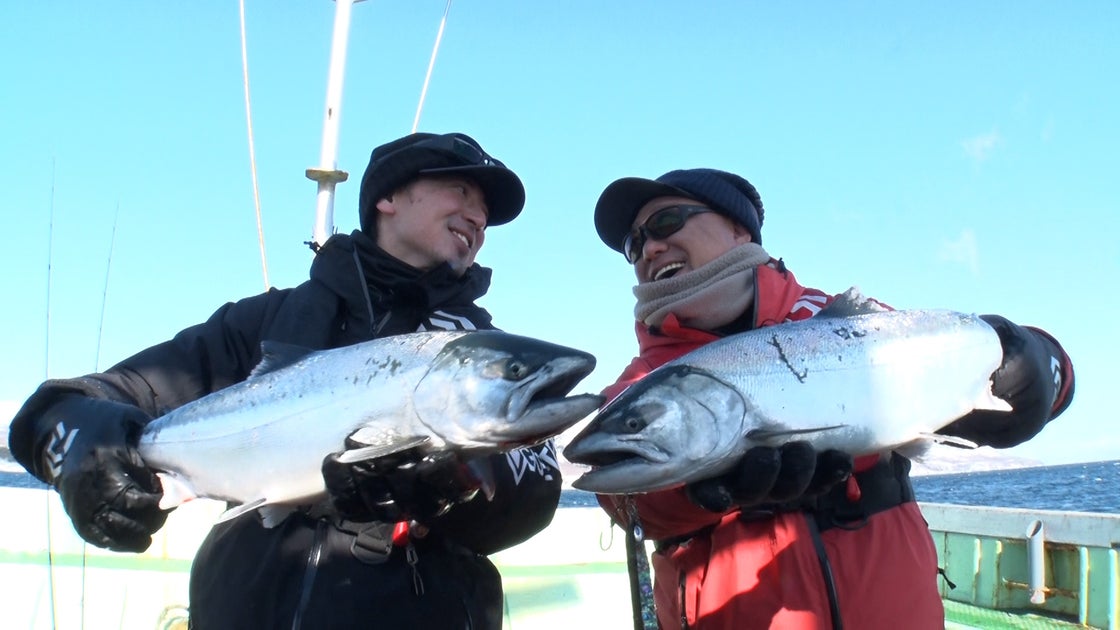 地元エキスパートが船からジギングでサクラマスを狙う様子や、流氷の中での釣りの興奮が描かれます。