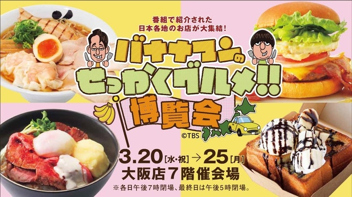 高島屋大阪店では3月20日から「バナナマンのせっかくグルメ!!博覧会」が開催されます。