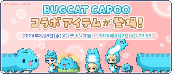 ネクソンは、PC向けMMORPG『メイプルストーリー』にて、2024年3月6日から台湾出身の人気キャラクター「BUGCAT CAPOO」とのコラボイベントを開催します。