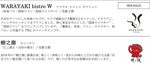 - 関西初出店の人気店やカフェレストラン