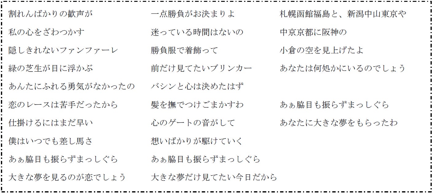 - 丘みどりさんと徳永ゆうきさんが競馬ソングを歌う