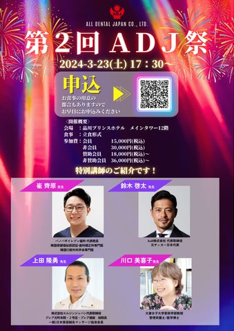 株式会社オール・デンタル・ジャパン主催の「第2回 ADJ祭」が2024年3月23日(土)に品川プリンスホテルメインタワー12階で開催されます。