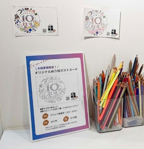 - ステッカー、カスタムタンブラー、500色の色えんぴつ、おたのしみ袋、展示アイテム