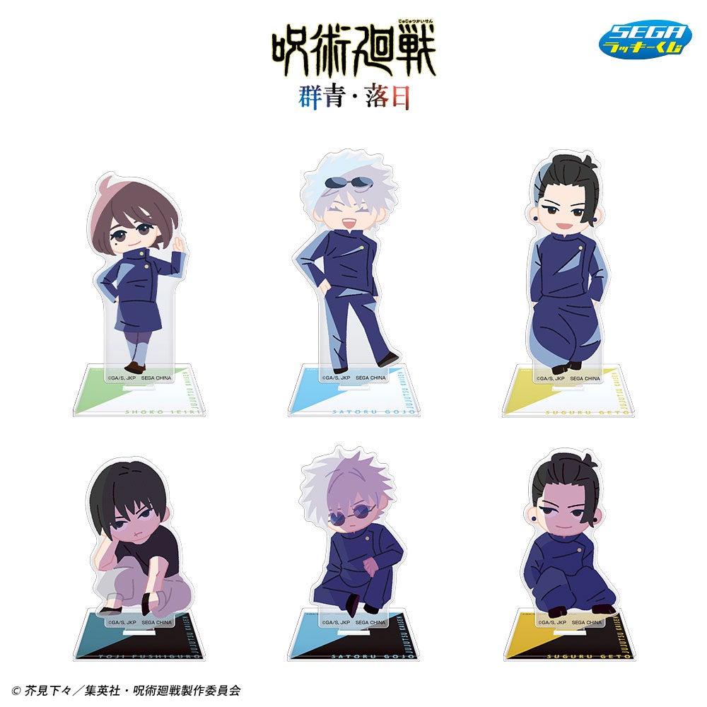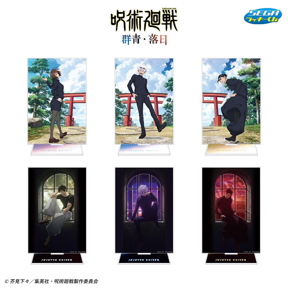 描き下ろしイラストには五条悟、夏油傑、家入硝子、伏黒甚爾の表情が注目されており、額入りアートやアクリルスタンドなどのアイテムが販売されます。