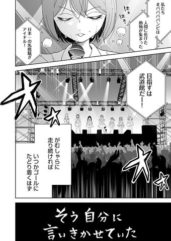 メンバー2人の卒業後、5人で武道館ライブ成功を目指すストーリーが展開されます。