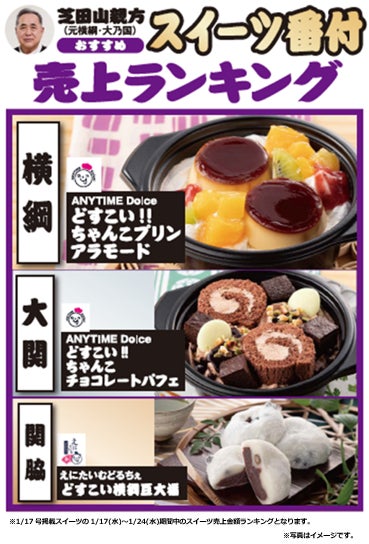 • 商品ラインアップや芝田山親方のコメント、スイーツの売上ランキングが紹介