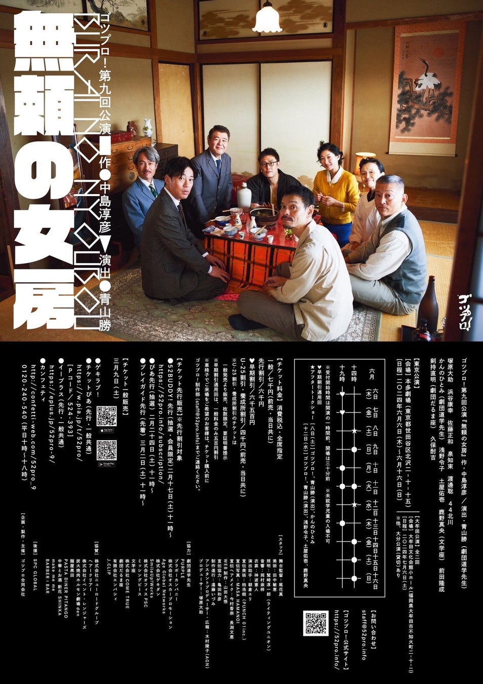 - 2024年6月6日から16日まで、本多劇場でゴツプロ!第九回公演『無頼の女房』