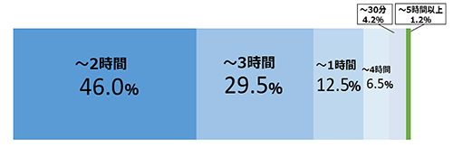 平日の平均活動時間は、1位「2時間」が46.0%、2位「3時間」が29.5%