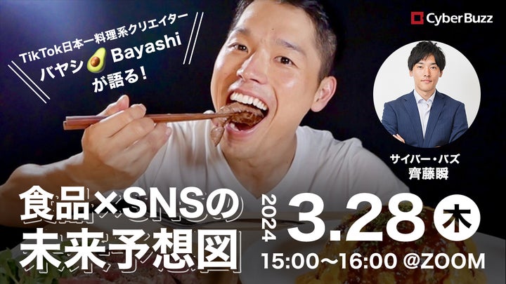 サイバー・バズは食品業界向けSNSマーケティングを得意とし、料理系クリエイター・バヤシさんをゲストに迎えたセミナーを開催します。